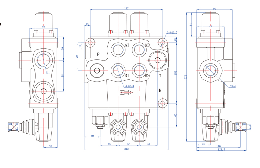 Порты A и B G3/4,G1 3/4-16 (SAE 8) 1 1/16-12 UN-2B (SAE 12)